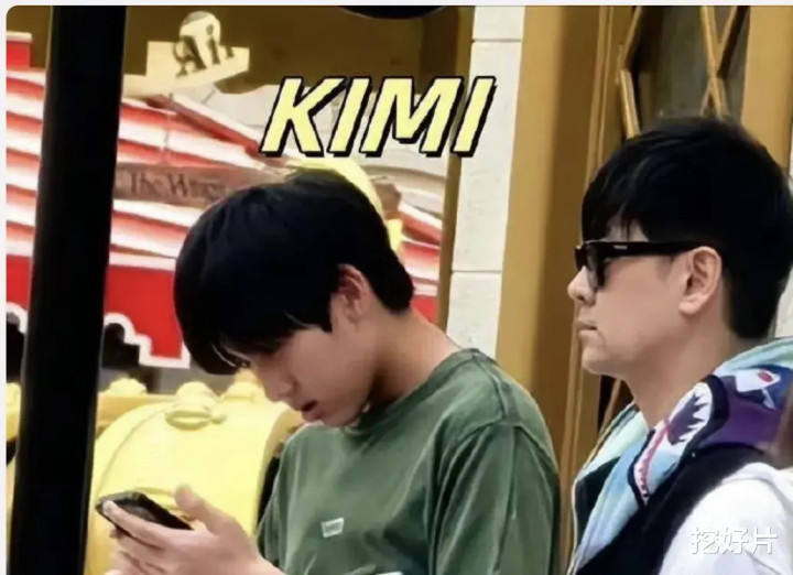 Kimi的侧脸也暴露了,穿着一件绿色的短袖,正在看手机。